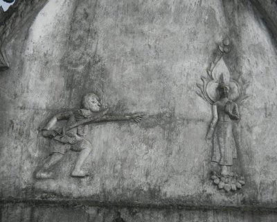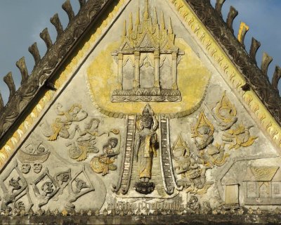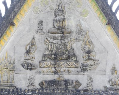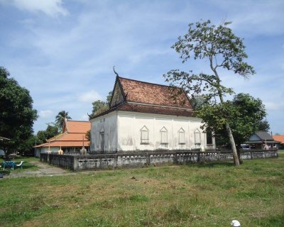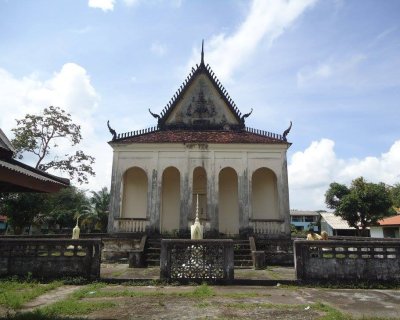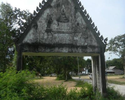ก่อด้วยอิฐบล็อกฉาบปูน มีหน้าบันสองด้าน ด้านนอกปั้นปูนรูปพระพุทธเจ้าประทับบนรัตนบัลลังก์ มีเทวดามาเฝ้าด้านละองค์ ตรงกลางมีข้อความในกรอบลายไทยความว่า "วัดแหลมดินสอ ต.เกาะนางคำ อ.ปากพะยูน จ.พัทลุง" หน้าบันด้านหลังเป็นปูนปั้นรูปองคุลีมารสวมพวงมาลัยนิ้ว ถือดาบด้วยมือขวา ส่วนมือซ้ายชี้ไปยังพระพุทธเจ้าซึ่งกำลังทรงพระดำเนิน