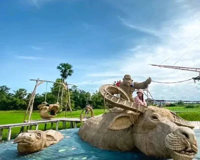 เอาใจคนรักธรรมชาติ มาเสพบรรยากาศที่ สำเภาไทย สถานที่ท่องเที่ยวและคาเฟ่กลางทุ่งนาโดดเด่นด้วย หุ่นฟางคิงคองยักษ์กำลังลากจูงเรือสำเภาไทยอยู่กลางทุ่งนา มีทางเดินสะพานไม้ตัดทุ่งนา รวมทั้งจุดถ่ายรูปหลายจุด พร้อมมีที่นั่งชิลให้ซึมซับบรรยากาศท้องทุ่ง นั่งห้อยขาจิบกาแฟมองวิวเขาทะลุ สัญลักษณ์ของพัทลุง อย่าลืมชิมเมนูเพื่อสุขภาพอย่างข้าวยำ อาหารไฮไลท์แดนใต้ เสิร์ฟพร้อมไก่ทอด และขนมจีนน้ำยา รับรองว่าต้องออกปากว่าหรอยจังฮู้ สำเภาไทย ตั้งอยู่ในอำเภอเมืองพัทลุง เสียค่าบริการเข้าชมผู้ใหญ่ 20บาท เด็ก10บาท เป็นสถานที่ท่องเที่ยวเกษตร ระหว่างทางเดินจะได้ถึงความร่มรื่น ทั้งซุ้มดอกไม้ สวนเกษตร และคอกเลี้ยววัว สัตว์ต่างๆ เข้ามาข้างในมีซุ้มขายเครื่องดื่มโซนนี้จัดสถานที่ออกแนววินเทจนิคๆ ริมทุ่งนามีจุดให้ถ่ายภาพหลายจุดมาก ทั้งเก้าอี้สีแดง แปลตาข่าย ซุ้มหัวใจสีชมพู และที่นั่งตาข่ายวงกลมสีแดง ตัดกับสีเขียวของท้องทุ่ง แถมวิวข้างหน้าคือ สำเภาและหุ่นคิงคองยักษ์ รวมถึงภาพของภูเขาอกทะลุสัญลักษณ์ของพัทลุง บริเวณระหว่างทางเดินสะพานไม้กลางทุ่งนา ยังมีการจัดทำจุดถ่ายภาพระหว่างทางอีกหลายจุด ทั้งที่นั่งบนฟางประดับด้วยม่านสีขาว ประตูไม้ที่เปิดไปคือ ชฎามโนรา การละเล่นพื้นเมืองของพัทลุงที่มีชื่อเสียงและเป็นแกลัษณ์ กลางทางเดิน คือ ไฮไลท์ของร้าน หุ่นคิงคองยักษ์ลากสำเภาไทย ข้างๆมีหุ่นควายน้อยอยู่ด้วย นอกจากนี้ยังมีที่พัก ทั้งห้องพักแบบเต้นท์เอาใจสายแคมป์ที่วิวด้านหลังคือภูเขา รวมทั้งห้องพักแบบบ้านให้ได้พักผ่อนสัมผัสวิวทุ่งนา ข้างเต้นท์ยังมีสไลเดอร์ให้เล่นถูกใจเด็กๆเป็นอย่างมาก สำเภาไทย ตั้งที่อยู่ เลขที่ 214 หมู่ 4 บ้านท่าสำเภาใต้ ตำบลชัยบุรี อำเภอเมือง จังหวัดพัทลุง