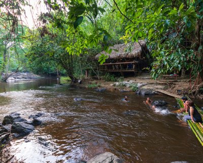 สำหรับกิจกรรมที่น่าสนใจ มีตั้งแต่การพาเข้าป่าไปหาวัตถุดิบ ไปชิมผลไม้ในชุมชน เปิดประสบการณ์แลกเปลี่ยนความรู้กับคนในชุมชน และที่ขาดไม่ได้คือการนอนแช่น้ำ ให้สายน้ำเย็น ๆ จากธรรมชาติไหลผ่านตัว หากอยากมาสัมผัสชีวิตตามวิถีธรรมชาติแบบนี้ ต้องจองล่วงหน้ามาเท่านั้น และต้องยินดีปฏิบัติตามกฎของบ้านพักทุกอย่าง ใครชอบให้ธรรมชาติเป็นเครื่องบำบัดจิตใจ ลองมานอนฟังเสียงน้ำไหลที่นี่สิ แล้วจะไม่อยากกลับเลย